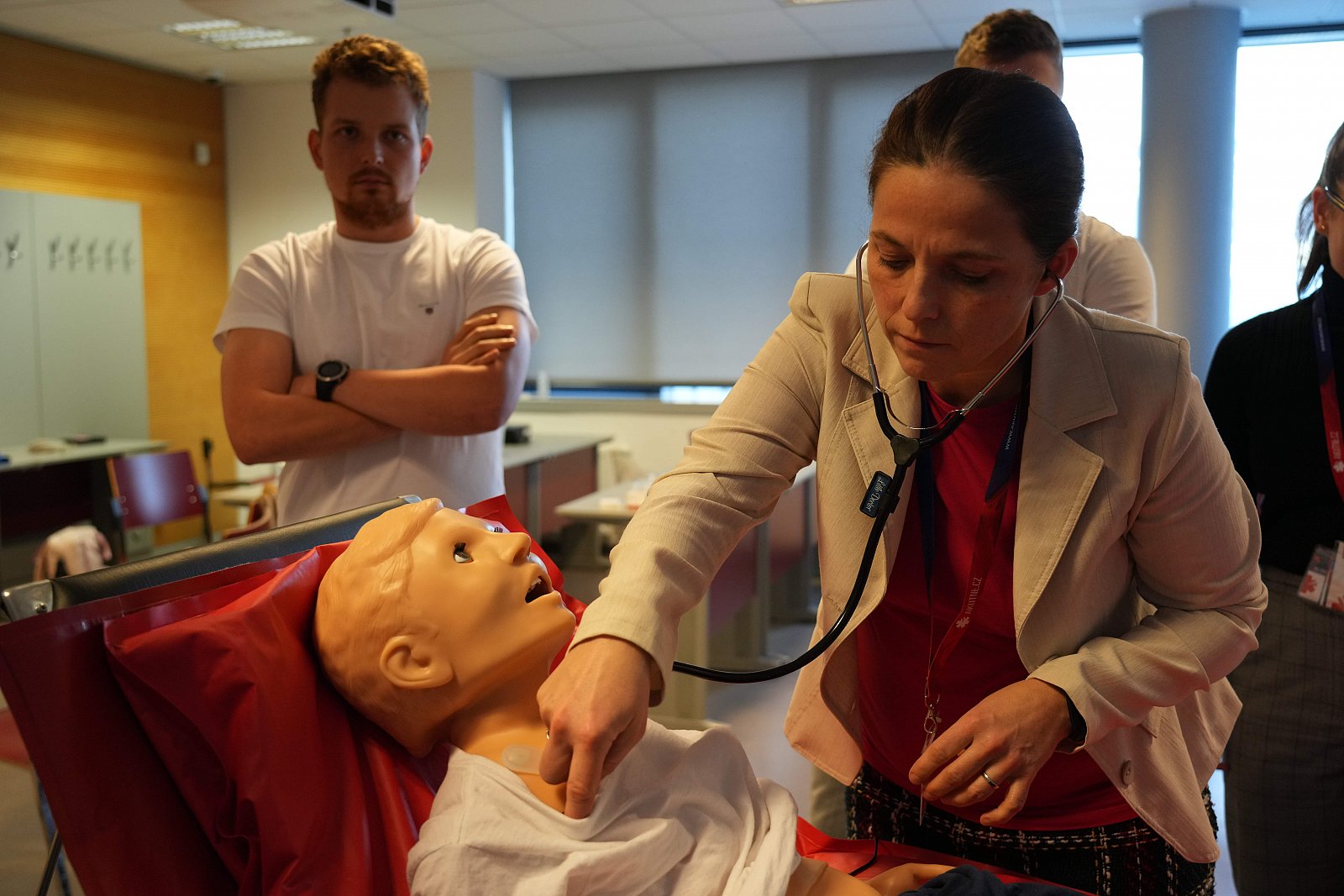 Přednášející dr. Brožek (Praha) představil problematiku intubace pomocí fibroskopu, kterou uvedl kazuistikou doplněnou videozáznamem celého postupu. Uvedl také doporučené postupy pro řešení komplikací a upozornil na kontraindikace nasotracheálního přístupu, jako jsou koagulační poruchy či poranění báze lební. V závěru zdůraznil význam pečlivého plánování a doporučil nebát se využití awake technik, vždy však s důkladným poučením pacienta. Dr. Otáhal (Praha) se věnoval postupům, které je nutné použít ve chvíli, kdy selžou všechny předchozí metody zajištění dýchacích cest, a zdůraznil, že poslední možností je infraglotické zajištění DC. Představil jednoduchý rozhodovací algoritmus, přičemž klíčové je okamžitě přivolat pomoc a dát jasně najevo, že jde o život. Podrobně popsal techniky koniopunkce, koniotomie i koniostomie a komentoval některé limity Dussových doporučení, zejména volbu průměru tubusu. Na závěr ukázal i instruktážní video upozorňující na časté chyby, kterým je třeba se v těchto kritických situacích vyhnout. Dr. Klabusayová (Brno) se věnovala specifikům zajištění dýchacích cest u dětských pacientů a na úvod zdůraznila zásadní anatomické a fyziologické odlišnosti. Popsala ideální polohu dítěte pro zajištění DC, která se mění s věkem, a představila pomůcku založenou na třech horizontálních liniích (tragus–jugulum, čelo a podložka). Doporučila využití laryngeální masky vždy, když je to možné, a zdůraznila výhody balónkových (Microcuff) kanyl, které snižují riziko otoku, přičemž jsou metodou volby u všech dětí nad 3 kg. Přednášející J. Kubalová (Zlína) zdůraznila, že intraoseální přístup představuje rychlou a spolehlivou metodu zajištění, indikovanou zejména při opakovaném selhání zajištění periferního vstupu a při resuscitaci dítěte dokonce postupem první linie. Podrobně popsala nejvhodnější místa vpichu – u dospělých proximální humerus a u dětí proximální tibii – a zdůraznila výhody humeru. V závěru též zmínila problematiku komplikací této metody. Přednášející J. Čierník z Brna zdůraznil, že ani úspěšná intubace nezaručuje úspěšnost ventilace. Vysvětlil možné stavy, při kterých jsou indikované hrudní intervence. Představil strategii řešení, indikace k výkonu a jednotlivé možnosti intervence – punkci, thorakostomii i místa vhodného vstupu. Zdůraznil rozdíly mezi metodami, jejich výhody a rizika, přičemž zdůraznil, že čím akutnější stav, tím agresivnější musí být přístup. V závěru upozornil, proč v praxi nedoporučuje používat trokarové drény. Po teoretické části následoval praktický workshop, během kterého si zájemci mohli na simulátorech vyzkoušet jednotlivé život zachraňující úkony v reálných modelových situacích
