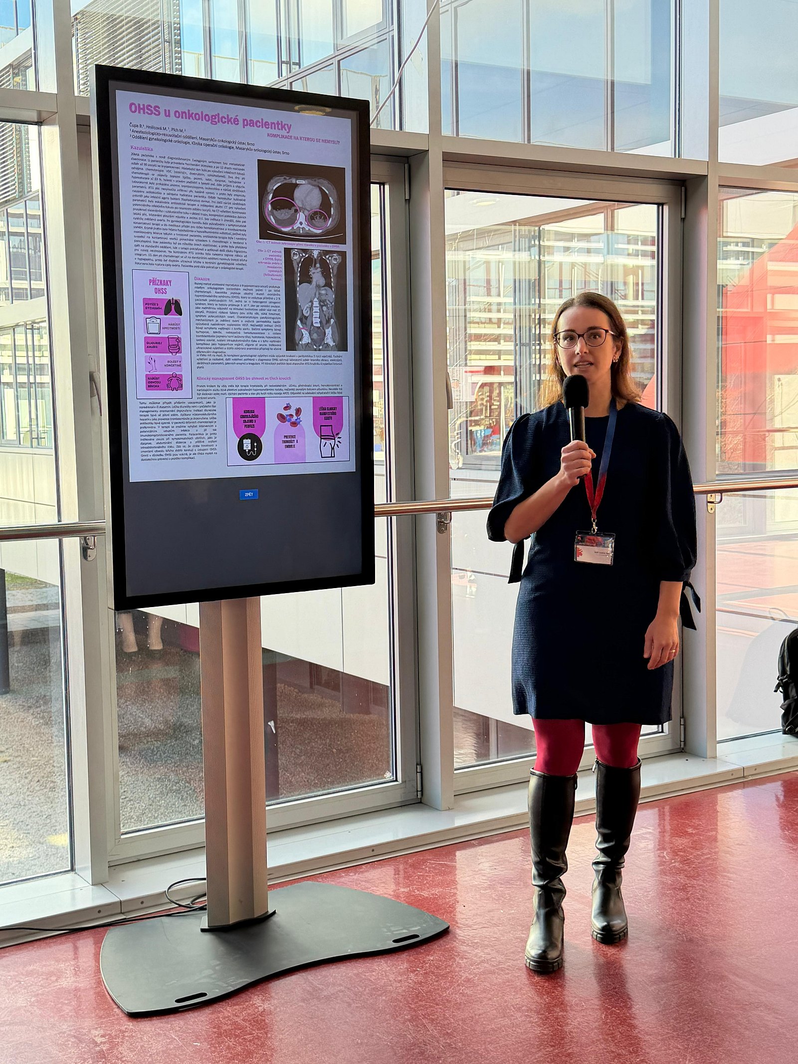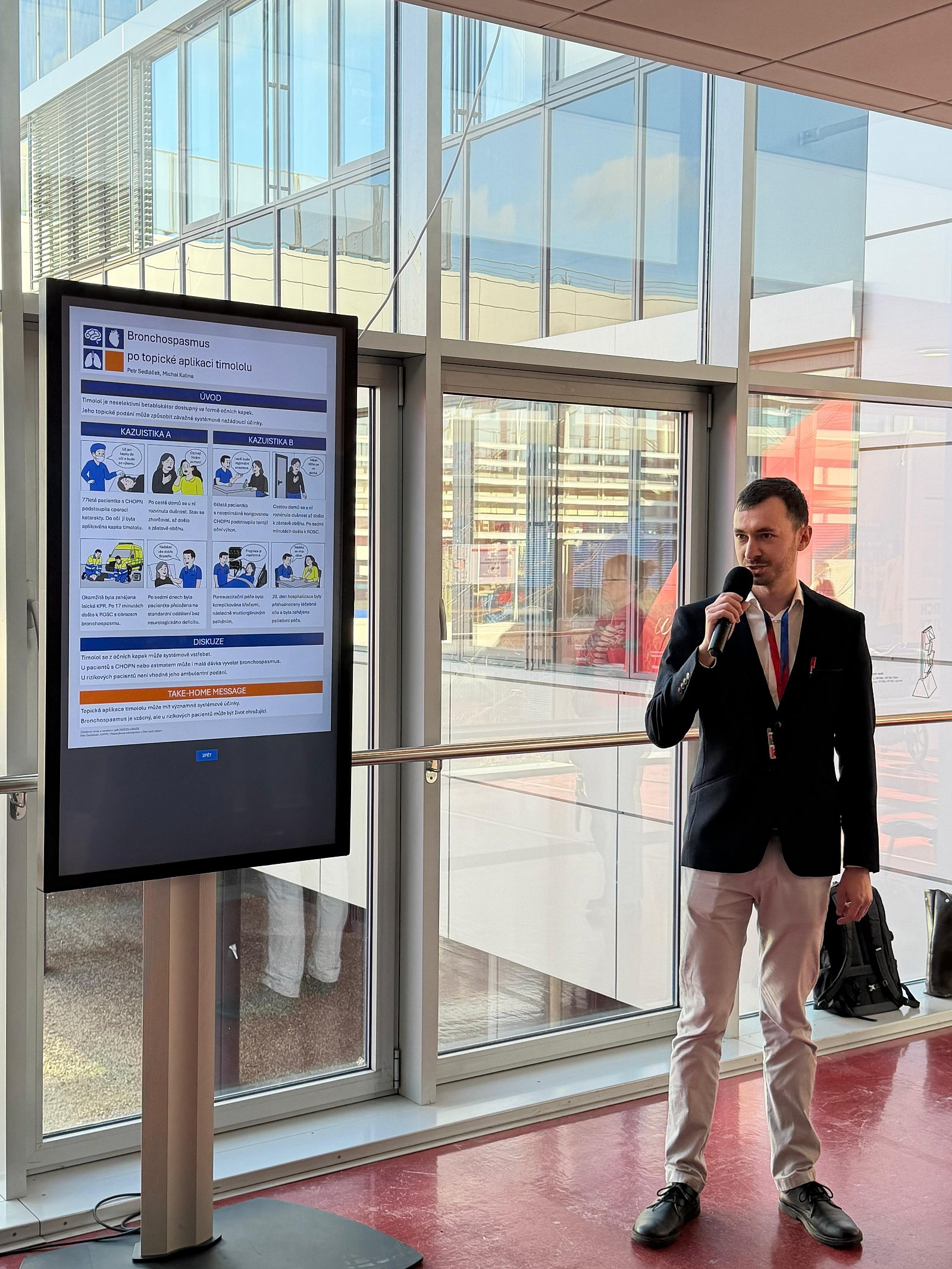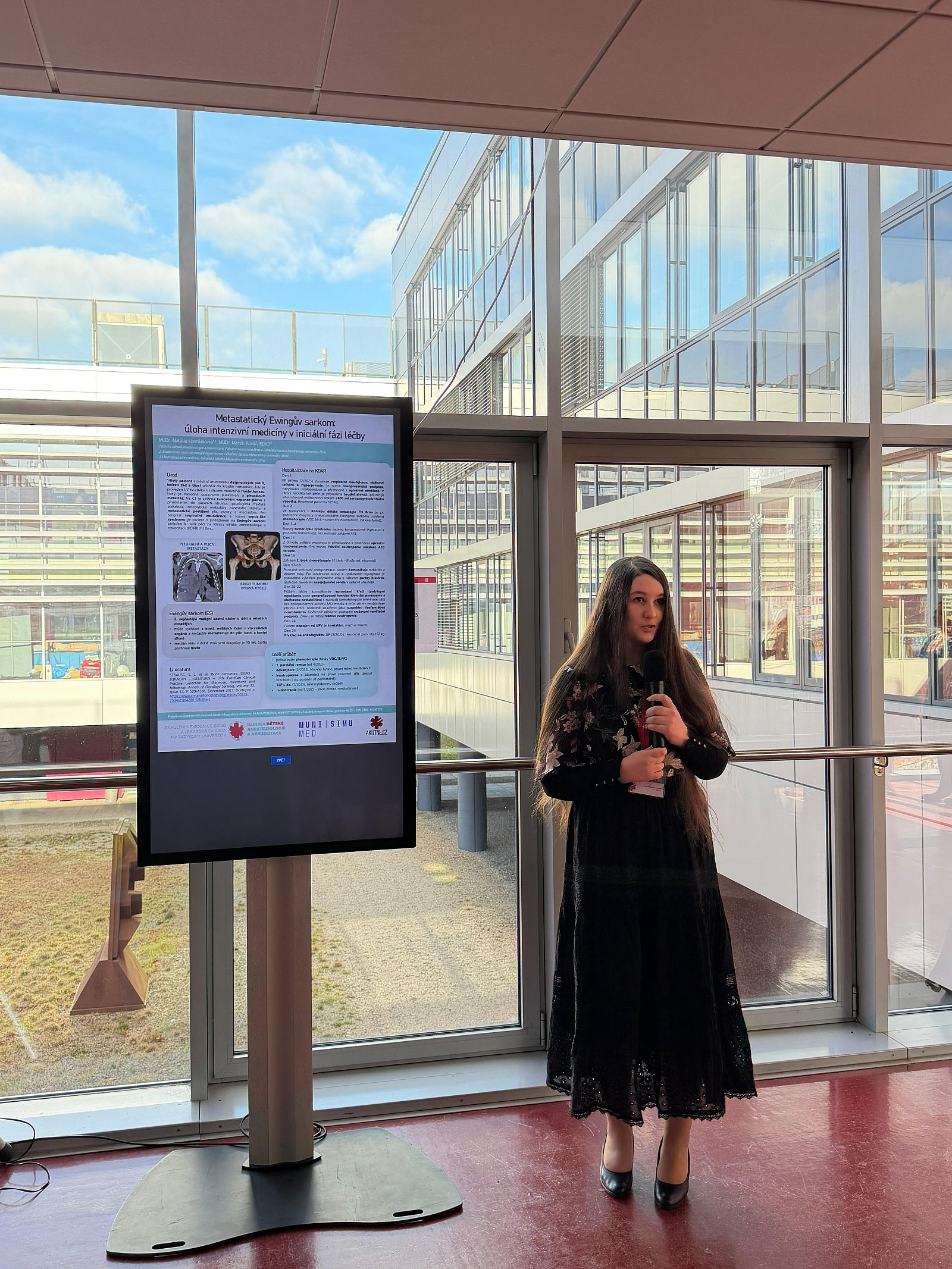 V polední pauze se v koridoru Univerzitního kampusu konala lékařská posterová sekce. Porota a posluchači postupně vyslechli 7 zajímavých sdělení. Na chvíli jsme se přesunuli do 19. století ke kolébce anestezie, následně jsme vyslechli dvě kazuistiky pacientů s Ewingovým sarkomem a jeho komplikacemi. Už víme, že lokální aplikace očních kapek může způsobit život ohrožující komplikace nebo že hyponatremie způsobená nadměrná konzumací alkoholických nápojů vás může stát život. Velmi poučná byla též kazuistika o vzniku plicního edému z negativního tlaku. Poslední sdělení přineslo příběh chlapce, který vyhrál svůj boj se syndromem toxického šoku.