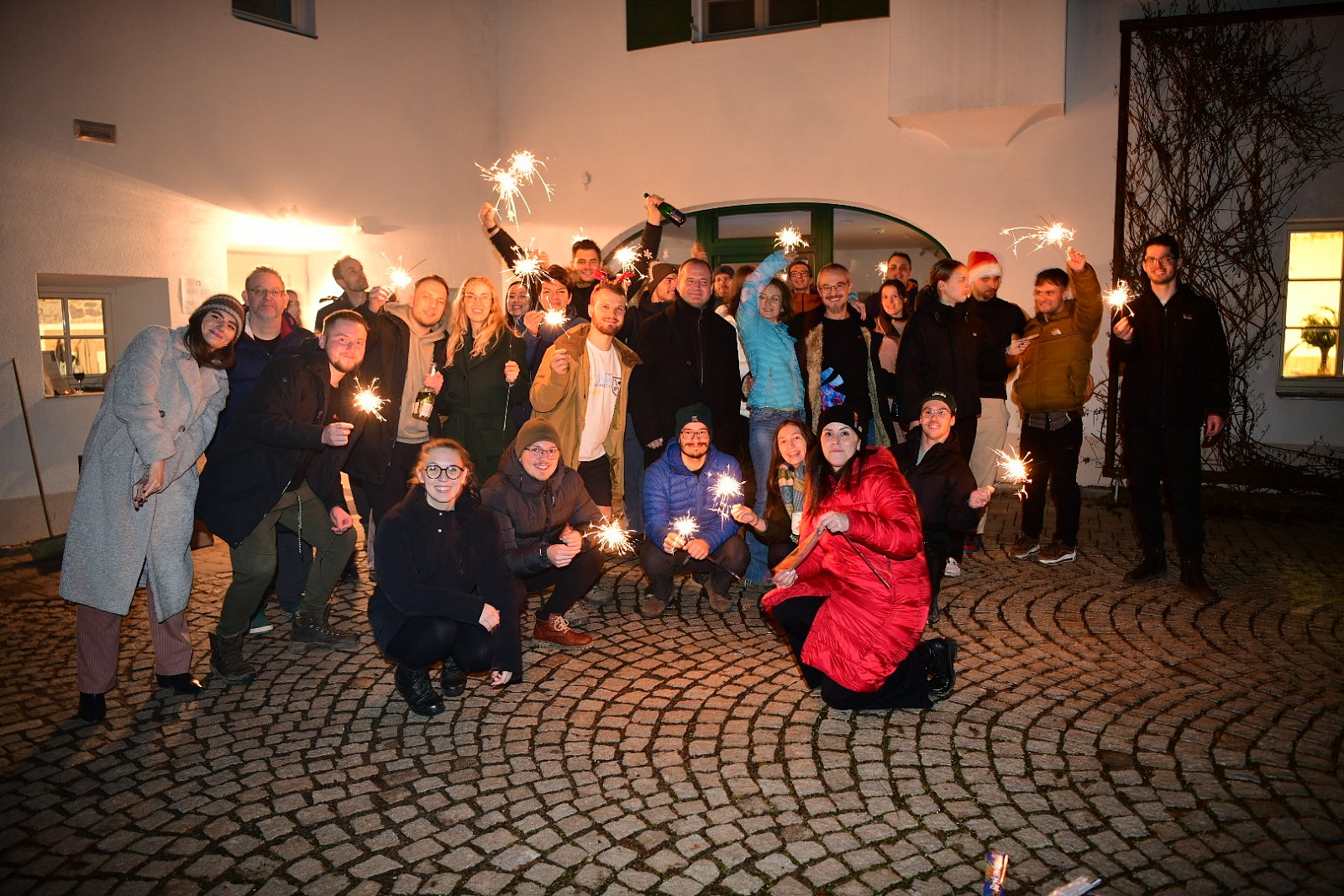 Úderem půlnoci se zbývající osazenstvo sešlo k přípitku a přání všeho dobrého do dalšího Akutního roku 2026.